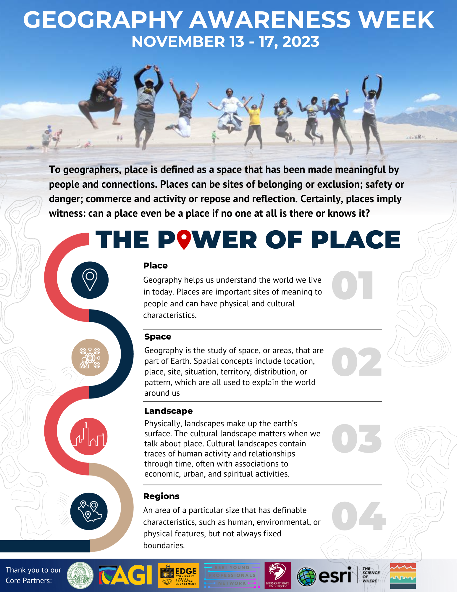 Geography puts the understanding of social and physical processes within the context of place – recognizing the great differences in cultures, political systems, economies, landscapes, and environments across the world, and exploring the links between them.